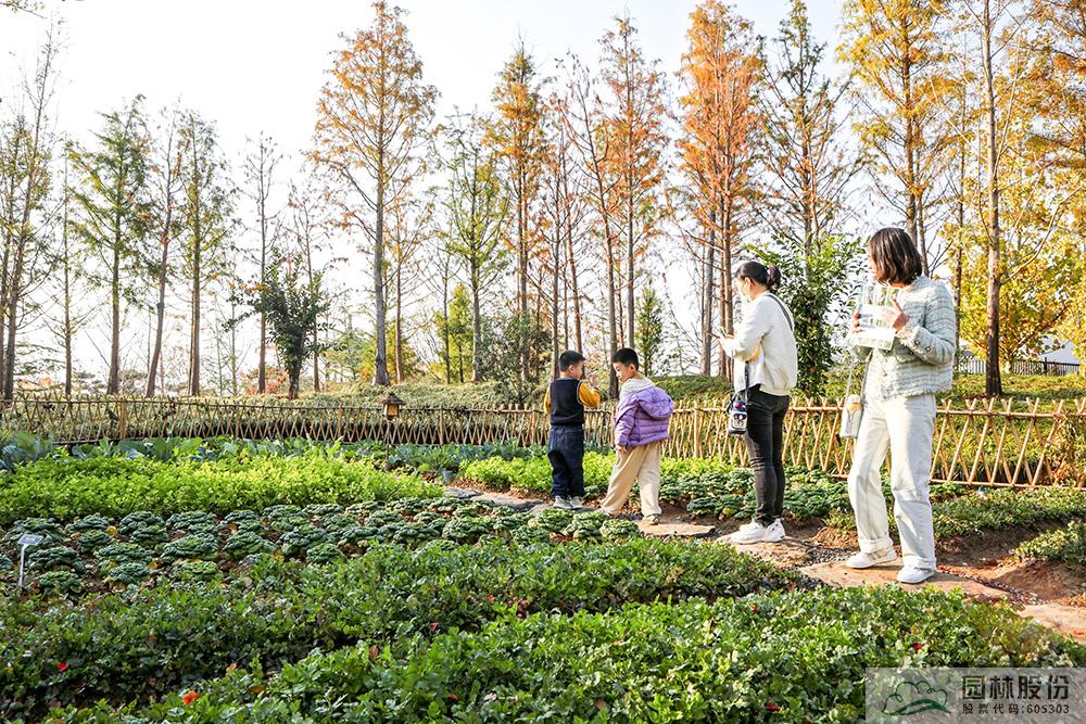 聽完美麗浙江的精彩故事,繼續(xù)前行。推開后院半掩的木門,園內(nèi)一畦畦綠油油的香菜、紫甘藍、大白菜、萵苣、芹菜、小蔥等長勢喜人,山楂、石榴、香泡、柿子等果子在枝頭飄散著淡淡的果香,銀杏、楓樹、黃櫨等色葉樹紅黃交錯,鄉(xiāng)土植物的配置強化了民居空間的山地氛圍和景觀特色,生態(tài)菜園景觀勾勒出錢塘人家的現(xiàn)代田園風情。