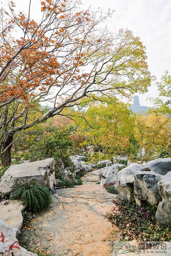 午后的暖陽穿過竹林,在碎石拼裝的園路上灑下斑駁光影,沿著幽靜的小路漫步前行,來到“竹穩(wěn)”展區(qū)。此處選取西湖環(huán)境中“茂林修竹”的元素,以毛竹種植為主,結(jié)合觀賞價值較高的金鑲玉竹、龜甲竹等,營造出曲徑通幽的景觀效果。