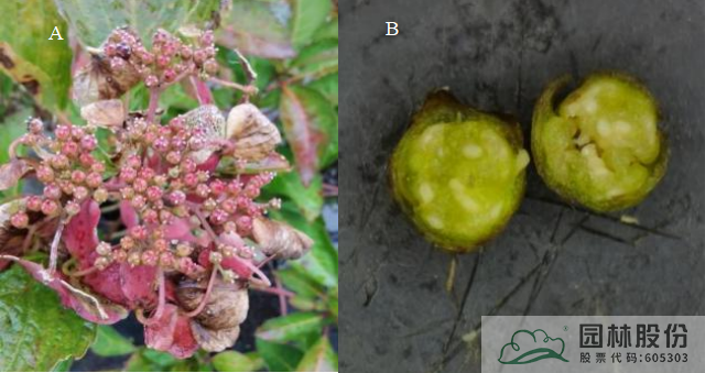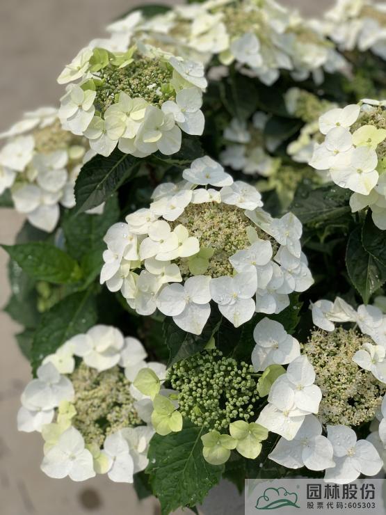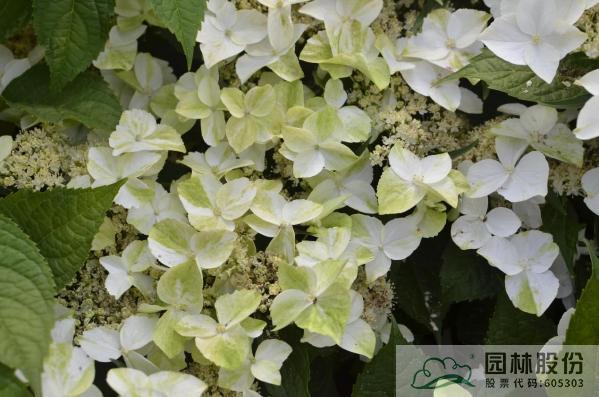 ‘落塵’和‘落雪’是大葉繡球‘魔幻翡翠’×中國繡球種間雜交新品種。種間雜交的難度要遠遠大于種內雜交,項目通過胚拯救和無菌播種技術,攻克了種間生殖隔離等難題,獲得了少量優質的變異后代。該品種最大的特性是繼承了中國繡球耐高溫和抗病蟲害的特性,非常適合江南地區的園林景觀露天栽培應用。