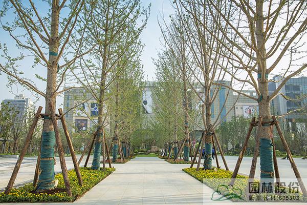作為徐州城市中心商圈軸線上的一塊“綠寶石”,彭城廣場復(fù)綠工程項目整體景觀以大樹骨架群落為主,應(yīng)用的骨架樹木近500棵,營造出大樹成蔭、花境迎賓的效果。