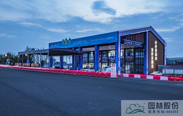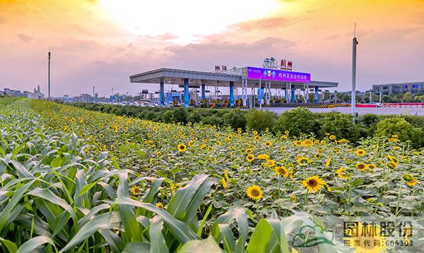 在南側送客區(qū)打造特色景觀農業(yè)區(qū),通過地形處理和土壤改良,采用堆坡種植,以背景、前景和蔬菜花鏡三景融合的農業(yè)種植造綠方式,創(chuàng)造性地將入城口和景觀農業(yè)造景融合,在2.3萬平方米的區(qū)域里,描繪出春天花開蝶舞紛飛、秋日豐收遍地金黃的田園風光大美畫卷。