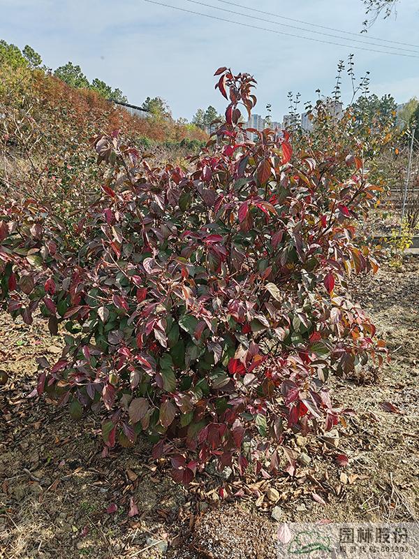 忍冬科莢蒾屬,落葉灌木,全株被毛。花白色,量大,花期4月。果紅色,量通常較小,果期10-12月。秋季葉色變暗紅,通常11月開(kāi)始變色,12月至次年2月達(dá)到最佳觀賞效果。病蟲(chóng)害較少,生長(zhǎng)速度快,且耐寒,通常雪期還未落葉。植株極耐修剪,適合工程應(yīng)用或庭院觀賞。