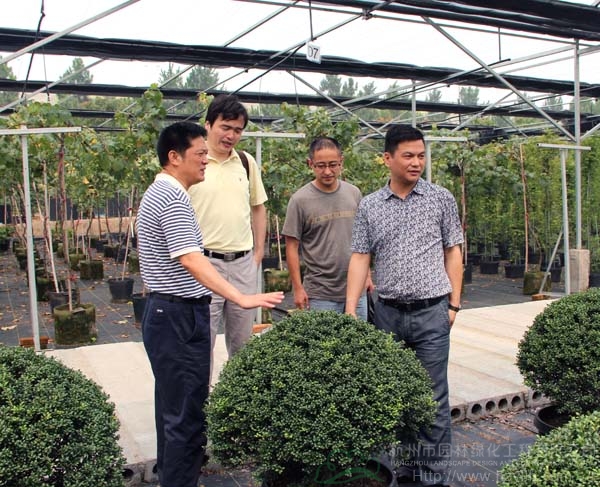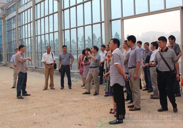 會議開始之前,在“以興林富民為重點,以項目建設為抓手,加快推進林業產業、科技推廣、林木種苗事業發展”指導思想的指引下,楊文鐘副局長和與會代表一起參觀考察了杭州市園林綠化工程有限公司的“園藝設施農業示范園——青山湖?花園中心”項目現場,詳細了解了智能玻璃溫室、鋼架蔭棚、容器苗區等主要生產設施設備和附屬配套設施的建設情況。公司總經理張炎良、副總經理丁旭升、研發中心經理沈柏春陪同參觀。