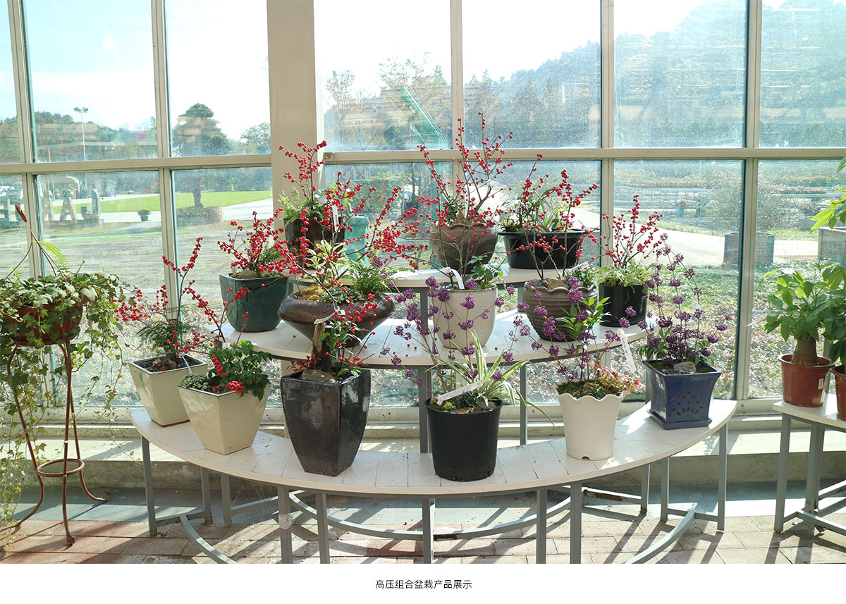 以容器育苗技術為基礎,結合株型控制技術、高空壓條技術和花期調控技術,對上百種園林植物進行深度開發,實現中大型植物小型化和多季開花的目的,有效提高了植物產品的附加值。