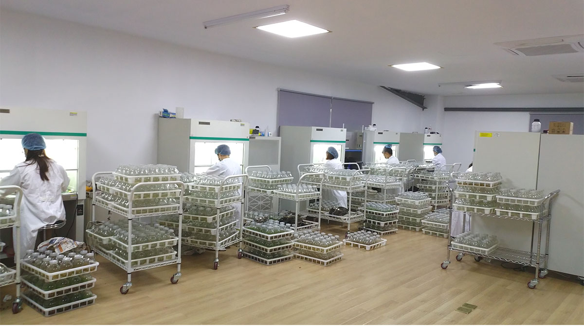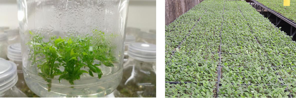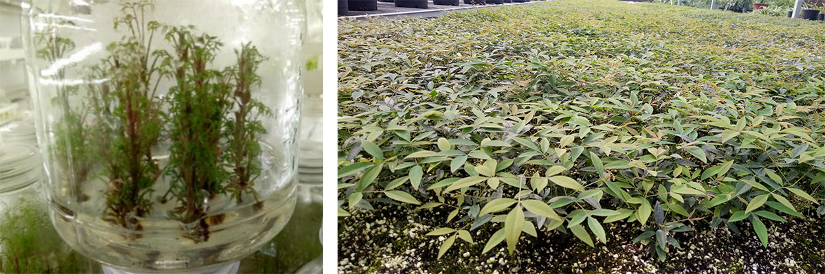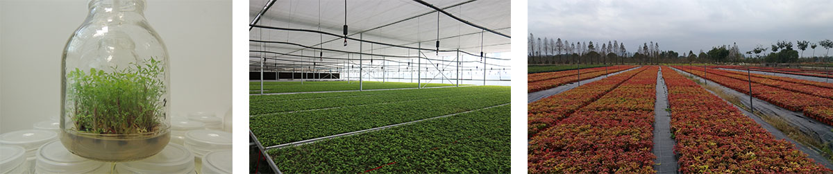 研發中心擁有1200㎡組培研發及生產車間,年產組培種苗500萬株。經過多年的研發,建立了南天竹屬、冬青屬、礬根屬、紫金牛屬、繡球屬、櫻屬等多種植物組培快繁技術體系,在木本植物組培快繁技術方面處于國內領先水平。