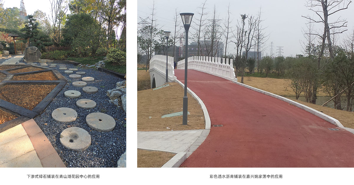 通過對鋪裝材料透氣性、生態(tài)性研究及鋪裝結(jié)構(gòu)層施工工藝改進(jìn)等措施,結(jié)合園林景觀地形處理、設(shè)置排水設(shè)施等手段,建立生態(tài)型鋪裝體系。